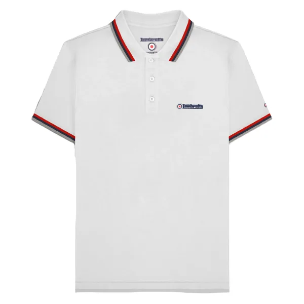 Lambretta Heren SS25 Drievoudig Getipte Polo Shirt (Wit/Rood)
