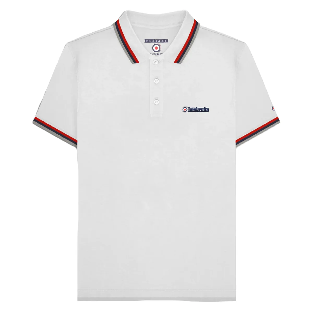 Lambretta Heren SS25 Drievoudig Getipte Polo Shirt (Wit/Rood) Prijzen