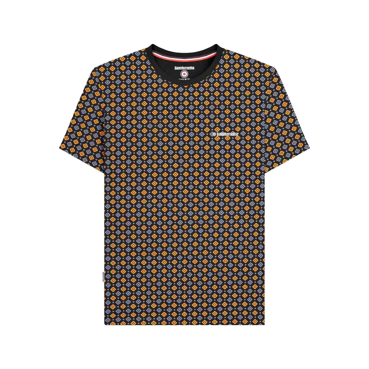 Lambretta Heren SS25 Geometrisch Tshirt ZwartGoud