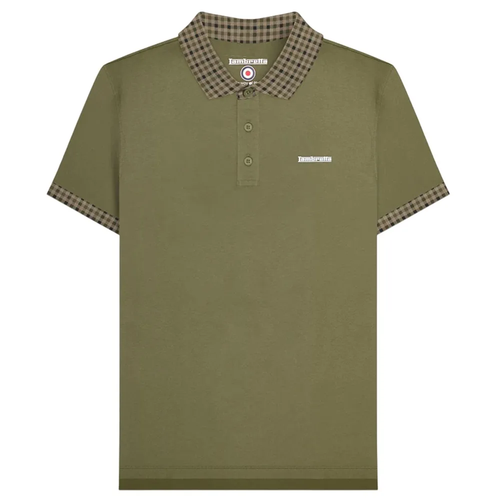 Lambretta Heren SS25 Gingham Poloshirt (Kaki Groen) Prijzen