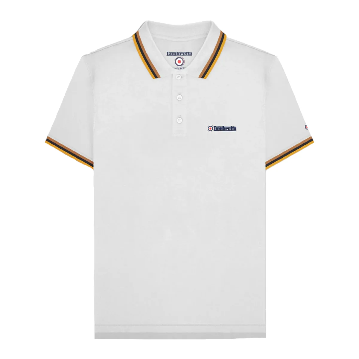 Lambretta Heren SS25 Triple Tipped Groot & Lang Poloshirt (Wit/Tabak/Navy/Goud) Prijzen