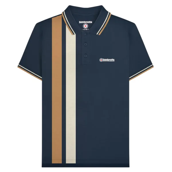 Lambretta Heren SS25 Verticaal Gestreept Poloshirt (Marine)