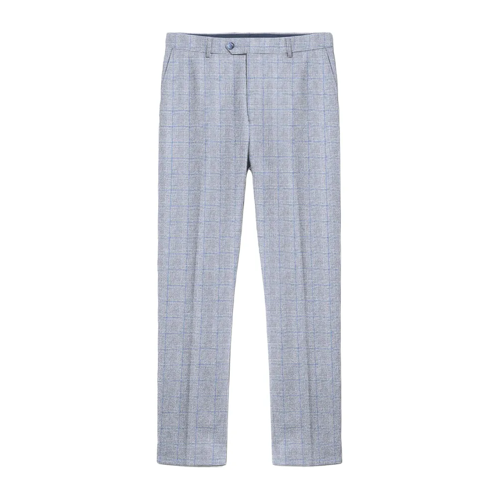 80% Polyester, 20% Rayon. Ontwerp: Prince Of Wales Ruit. Sluiting: Knop, Haak. Ceintuurlussen. Zakken: 2 Zijzakken, 2 Achterzakken, Met Knopen. Pasvorm: Slank Aangepast. Opmerking: Houdt Uit De Buurt Van Vuur.