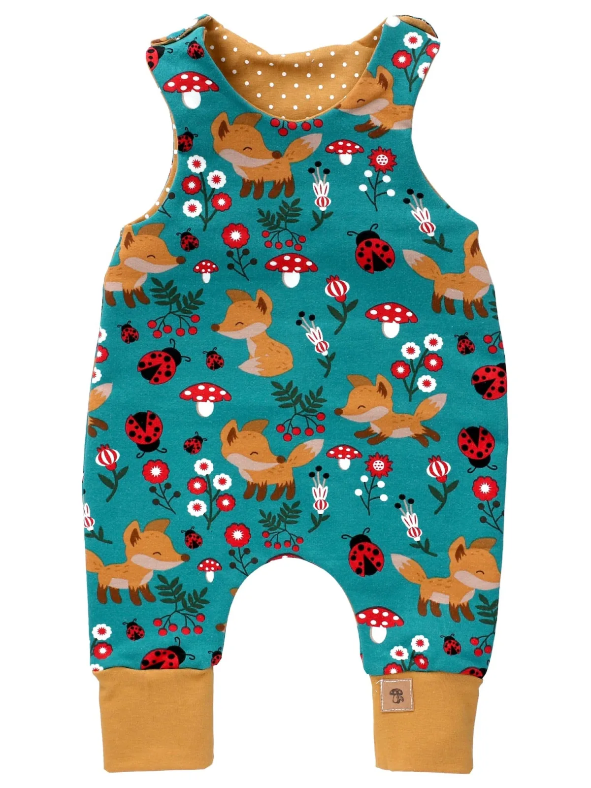 Specificaties: Land-Juwelen Rompertje/body mosterd / petrol / knalrood / wit