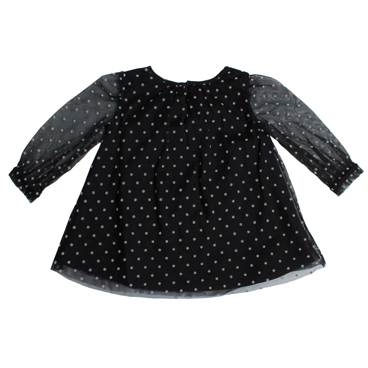 GAP Gepunktetes Tüllkleid für Mädchen mit transparenten Ärmeln und elegantem Stil Dieses GAP Mädchenkleid besticht durch seinen raffinierten Polka-Dot-Print und die langen, transparenten Tüllärmel. Mit seiner bequemen Passform und dem weichen Innenfutter ist es ideal für besondere Anlässe oder Feiern mit einem edlen Touch. Details: Tüll-Außenstoff mit gestickten Punkten. Weiches Innenfutter für mehr Komfort. Rundhalsausschnitt mit kleiner Raffung. Lange, transparente Ärmel mit gerafften Manschetten. Gerader und lockerer Schnitt. Knopfverschluss auf der Rückseite mit tropfenförmiger Öffnung. Ein elegantes und zartes Mädchenkleid, perfekt für formelle Anlässe oder Partys mit Stil und Komfort. Komposition: 100% Polyester Pflege: Mit ähnlichen Farben kalt in der Maschine waschen. Bei niedriger Temperatur trocknen. Bei Bedarf bei mittlerer Temperatur bügeln.