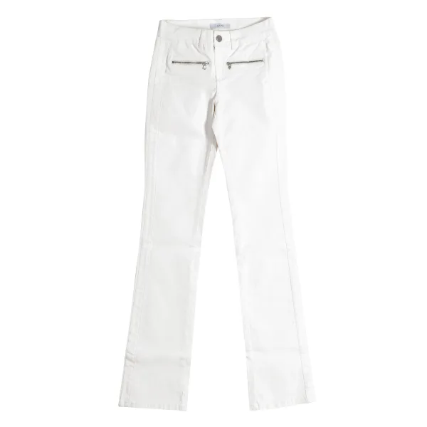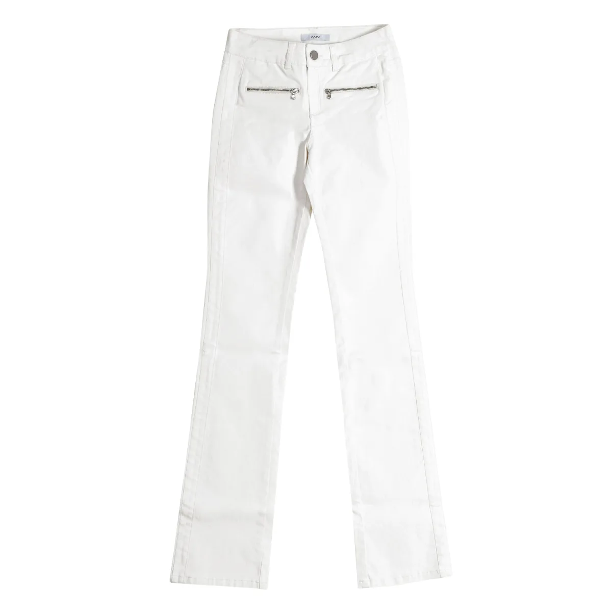 Designer lange broek. Witte kleur Tailleband met knoopsluiting. Zijzak met rits. Naden in toon zichtbaar. Samenstelling: 98% Katoen, 2% Elastaan Wasvoorschriften: Wassen op max. temperatuur 30º. Het gebruik van een droger is niet toegestaan. Niet bleken. Chemisch reinigen. Samenstelling: 98% Katoen, 2% Elastaan Onderhoud: Wasvoorschriften: Wassen op max. temperatuur 30º. Droger is niet toegestaan. Geen bleekmiddel gebruiken. Chemisch reinigen.