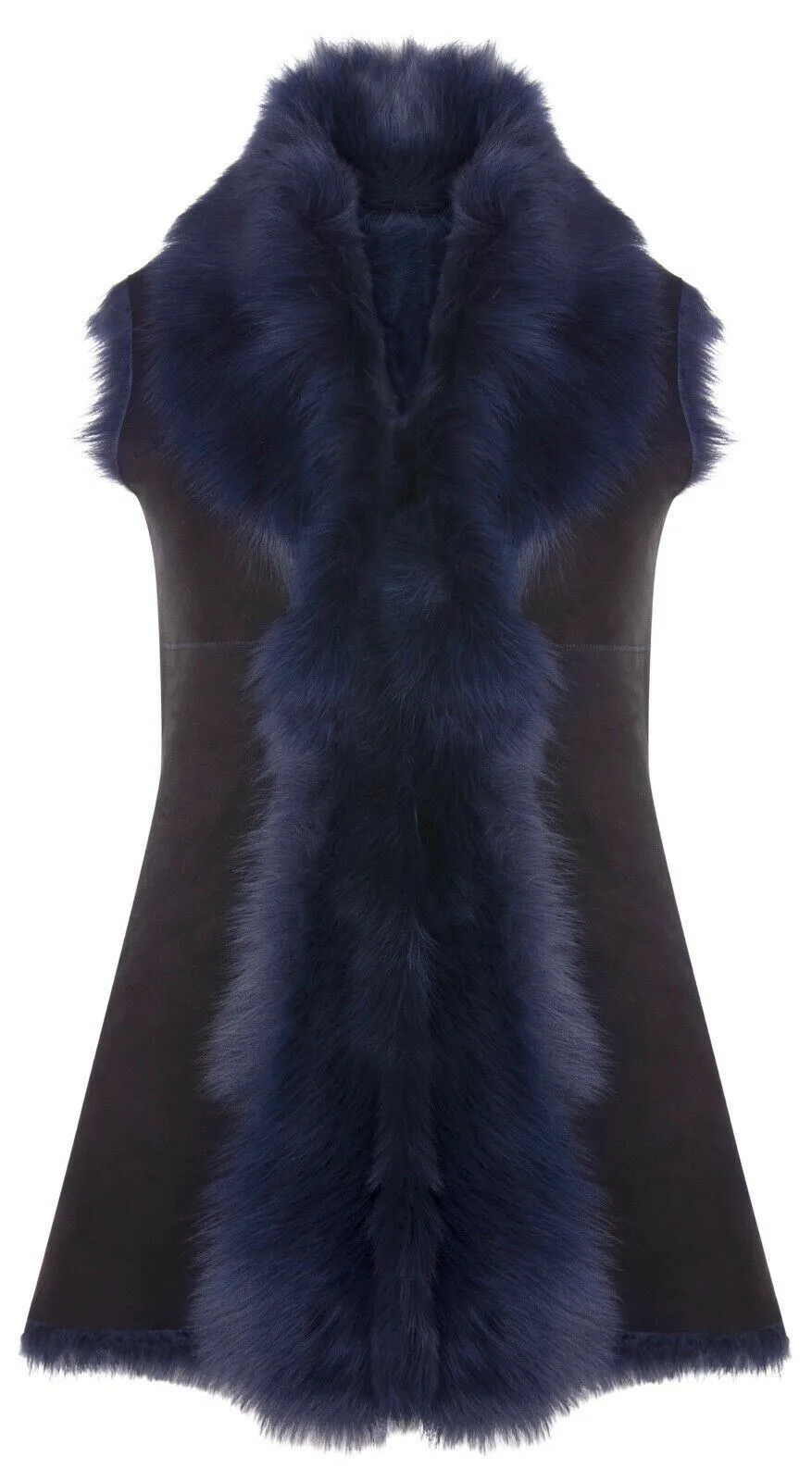 Een kledingstuk van hoge kwaliteit dat perfect is om een elegante look te behouden en tegelijkertijd warm te blijven tijdens de koudere maanden. Dit gilet is verlengd in de lengte en is voorzien van onze hoogwaardige Spaanse Toscana-schapenvacht, die bekend staat als een van de warmste en meest comfortabele wolsoorten ter wereld. De zachte wollen voering kan worden verborgen met een haak- en oogsluiting of zichtbaar aan de voorkant in een opvallend watervalontwerp voor een extravagante look, waardoor het het perfecte kledingstuk is om een vleugje elegantie toe te voegen aan je winteroutfits. • Exclusief vervaardigd in Groot-Brittannië met behulp van dubbelzijdige Toscana-schapenvacht • De voering van Toscana-schapenvacht is ongeëvenaard in het bieden van warmte en comfort • Buiten- en binnenkant zorgvuldig vervaardigd voor een zachte, zijdeachtige afwerking • Lengte van 90 cm