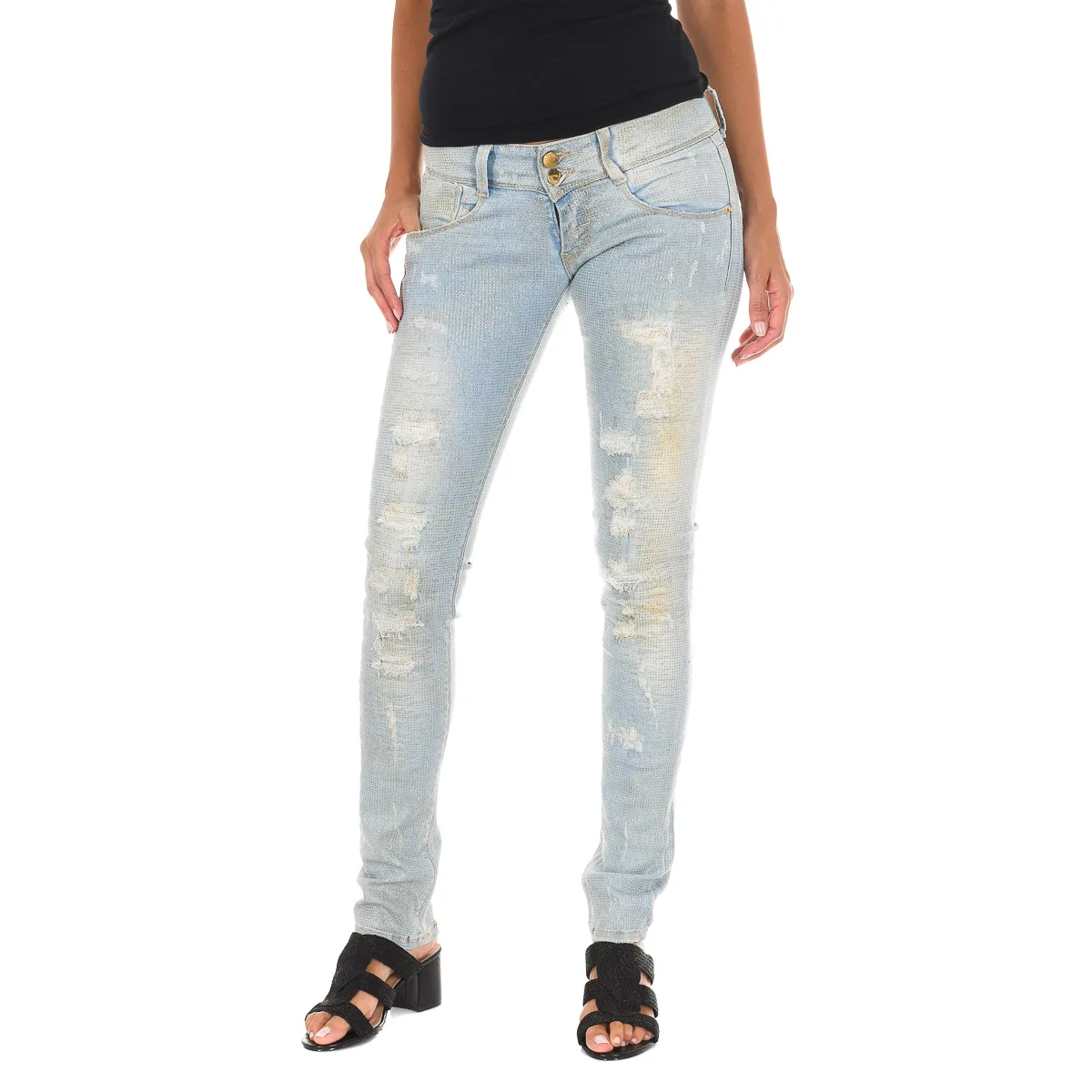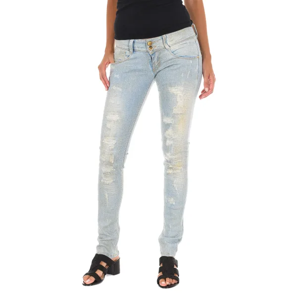 Lange denim broek versleten en gescheurd effect 10DB50130 vrouw Prijzen