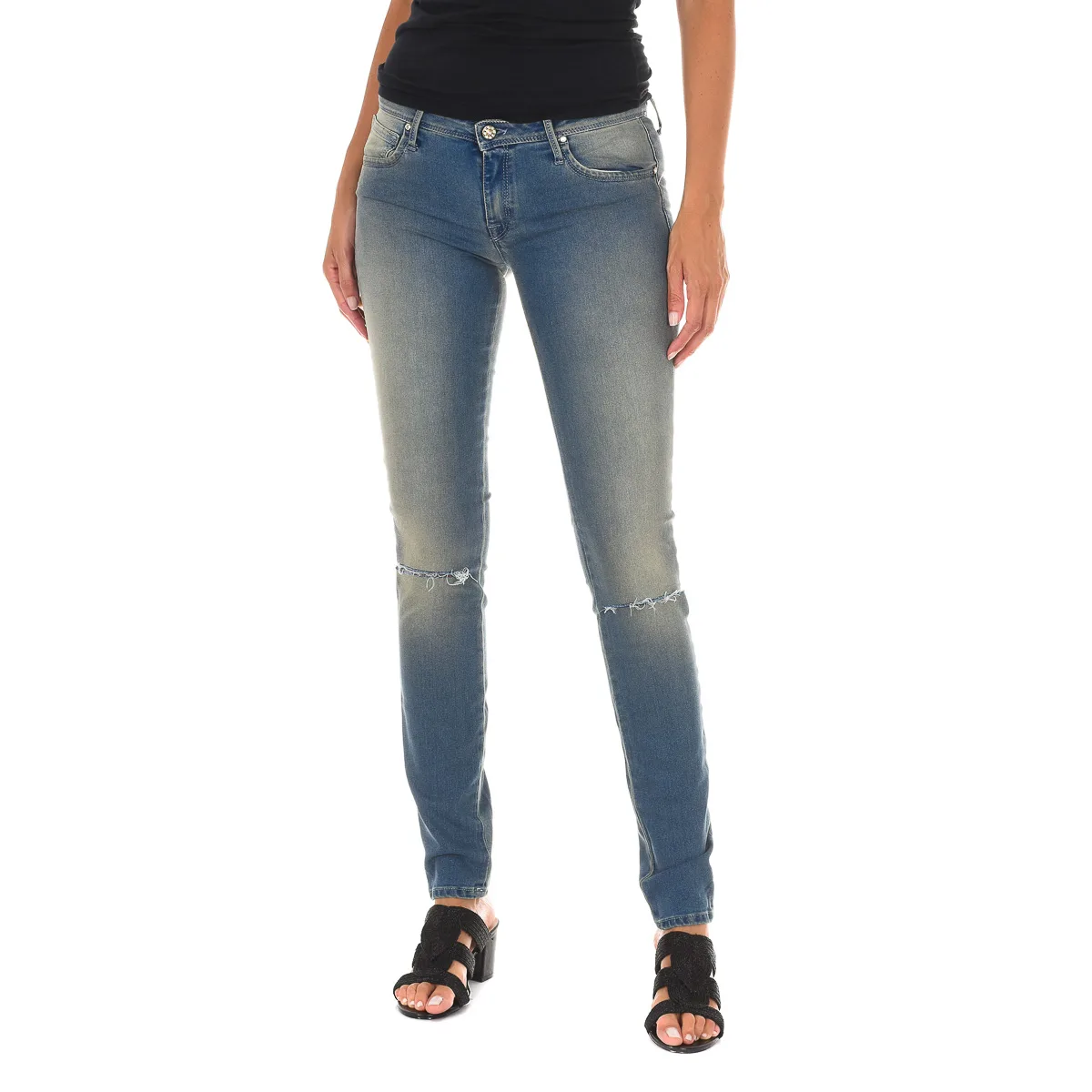 Lange denim broek versleten en gescheurd effect 10DB50262 vrouw