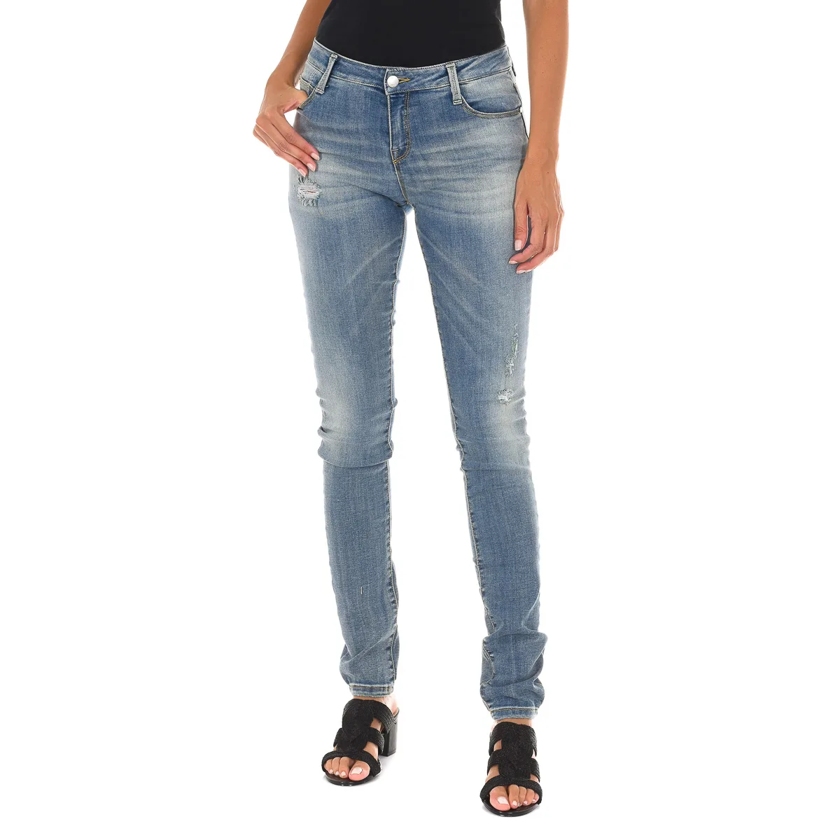 Lange denim broek versleten en gescheurd effect 10DB50305 vrouw