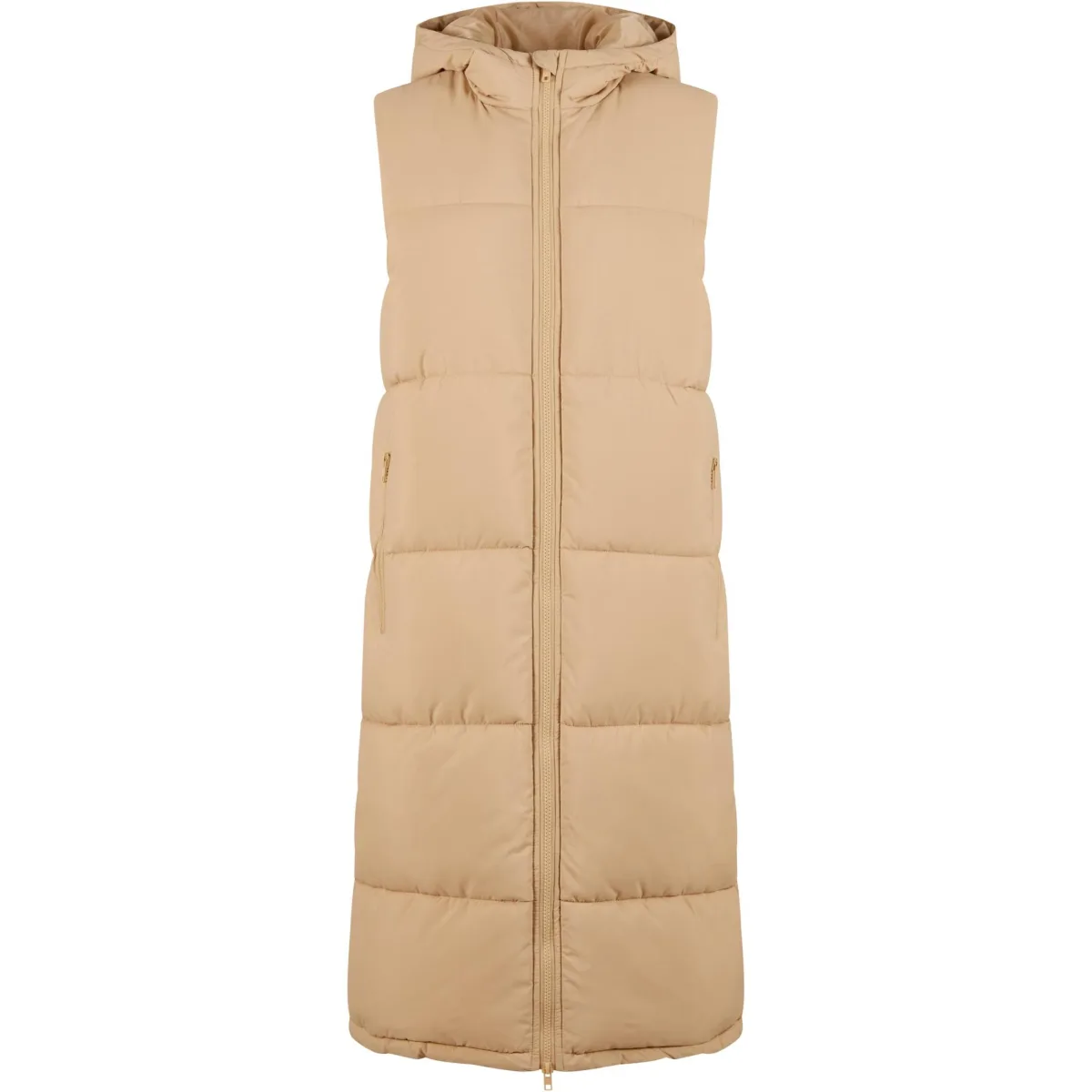 Lange gewatteerde mouwloze damesjas met capuchon Urban Classics Prijzen