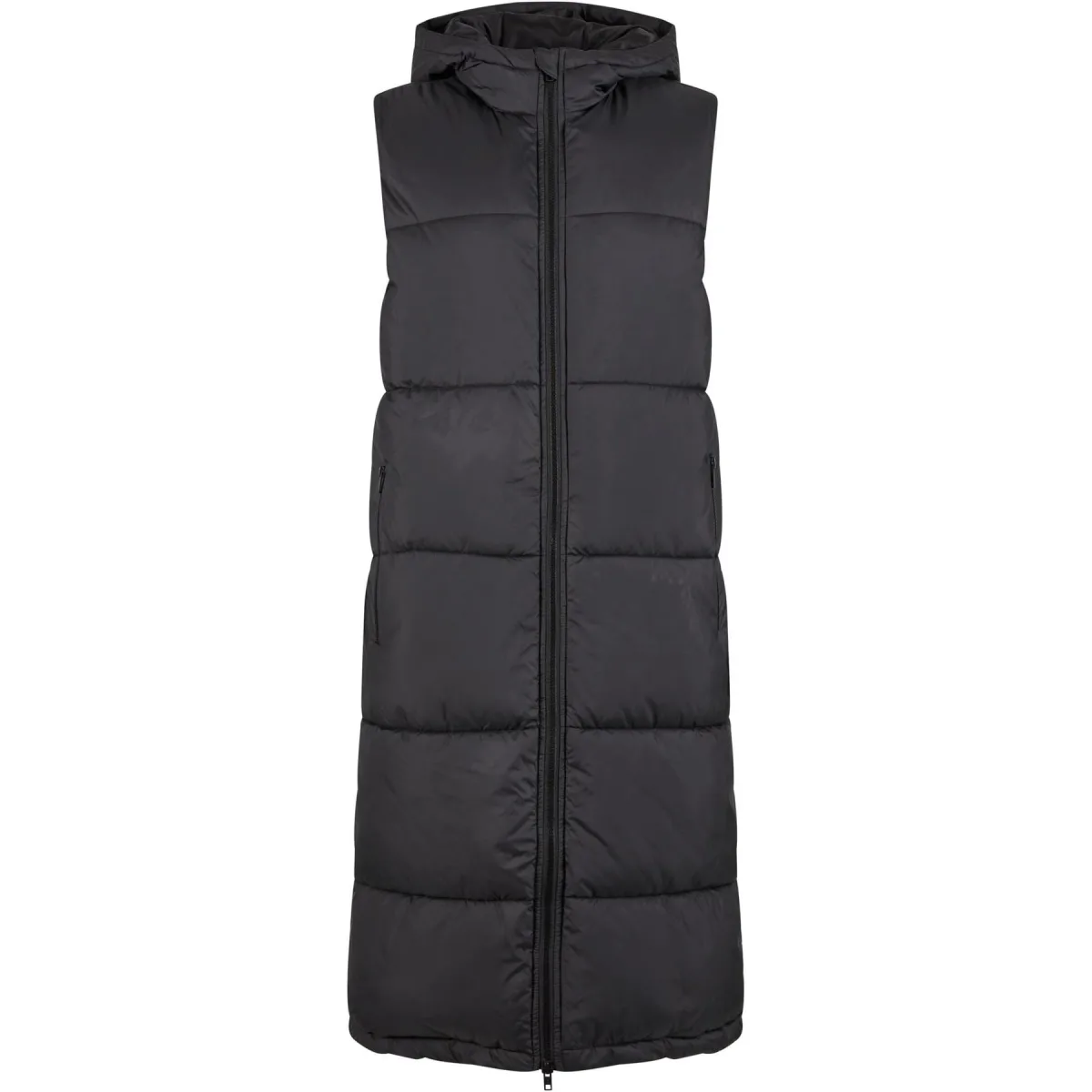 Lange gewatteerde mouwloze damesjas met capuchon Urban Classics Prijzen