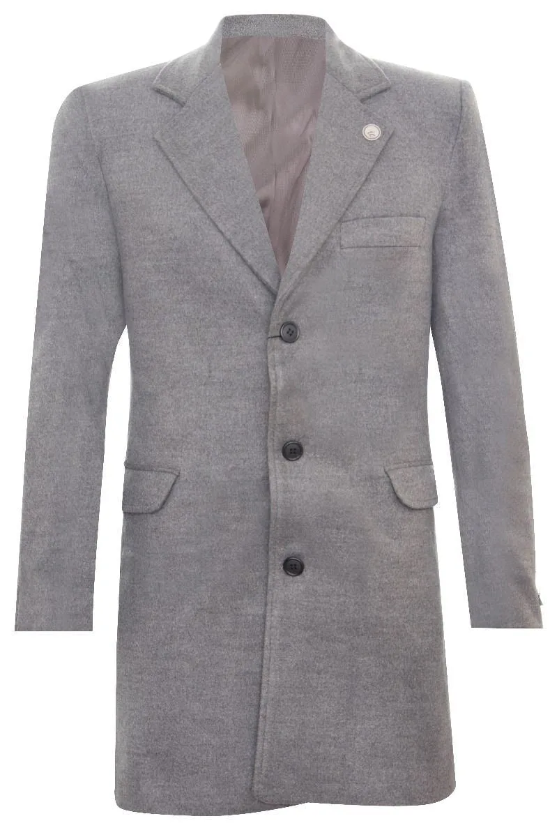 Lange grijze wollen slim-fit overjas voor heren Prijzen