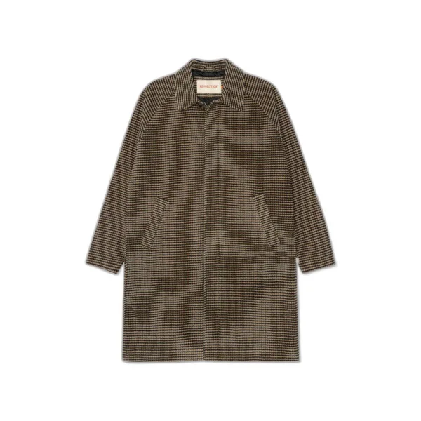 Lange jas van geruit polyester en wol. Klassieke kraag, paspelzakken en knoopsluiting. Alleen stomen 660 g/m² jasstof. Het model meet 189 cm en draagt maat 32. Normale pasvorm 90% polyester, 10% wol