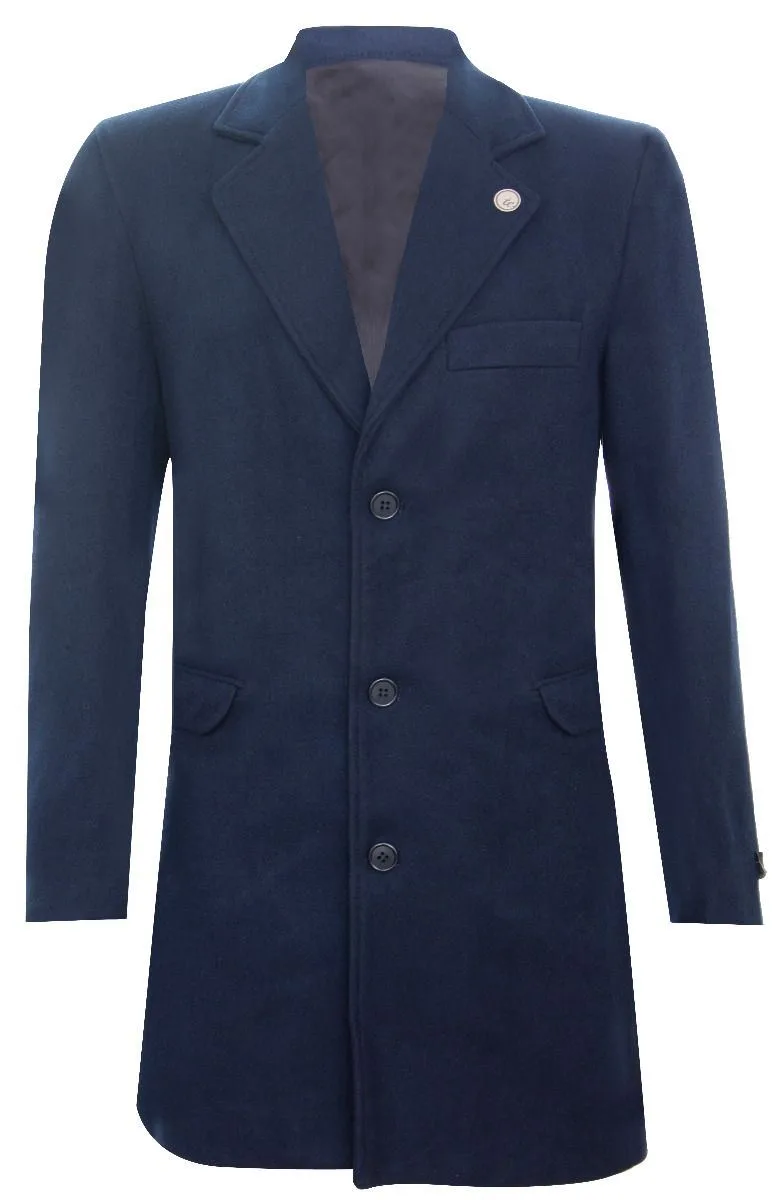 Lange marineblauwe wollen slim-fit overjas voor heren Prijzen