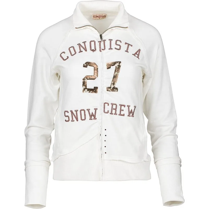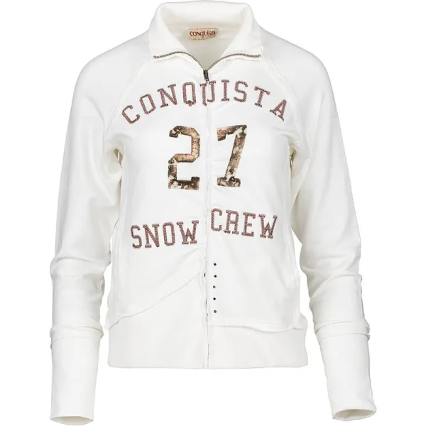 Lange Mouw Ecru Vest met Print en Borduurdetails