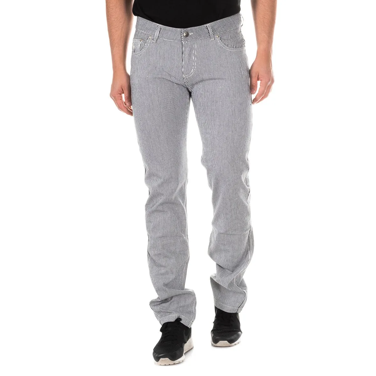 Lange broek. Kleur wit-zwarte strepen. Rits- en knoopsluiting aan de voorkant. Twee open zakken en minizakje op de voorkant. Twee open zakken op de achterkant. Riemlussen. Borduursel van het kenmerkende logo in de minizak. Leren label gepersonaliseerd door de firma op de zijkant van de achterste tailleband. Bassen met rechte snit. Naden in toon zichtbaar. Samenstelling: 100% katoen Wasvoorschriften: - Maximaal wassen op 40ºC. - Strijken op gemiddelde temperatuur, max. 110 ° C. - Droger mag gebruikt worden. - Geen bleekmiddel gebruiken. - Chemisch reinigen is niet toegestaan. Samenstelling: 100% Katoen Onderhoud: - Maximaal wassen op 40ºC. - Strijken op gemiddelde temperatuur, max. 110ºC. - Je kunt een droger gebruiken. - Geen bleekmiddel gebruiken. - Kan niet chemisch gereinigd worden.