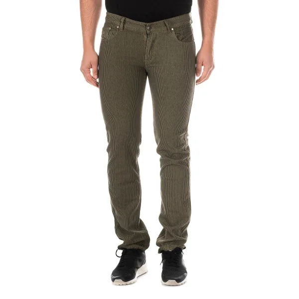 Lange broek. Khaki kleur-zwarte strepen. Rits- en knoopsluiting aan de voorkant. Twee open zakken en minizakje op de voorkant. Twee open zakken op de achterkant. Riemlussen. Borduursel van het kenmerkende logo in de minizak. Leren label gepersonaliseerd door de firma op de zijkant van de achterste tailleband. Bassen met rechte snit. Naden in toon zichtbaar. Samenstelling: 100% katoen Wasvoorschriften: - Maximaal wassen op 40ºC. - Strijken op gemiddelde temperatuur, max. 110 ° C. - Droger mag gebruikt worden. - Geen bleekmiddel gebruiken. - Chemisch reinigen is niet toegestaan. Samenstelling: 100% Katoen Onderhoud: - Maximaal wassen op 40ºC. - Strijken op gemiddelde temperatuur, max. 110ºC. - Je kunt een droger gebruiken. - Geen bleekmiddel gebruiken. - Kan niet chemisch gereinigd worden.