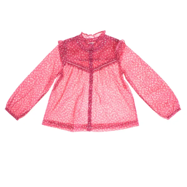 Meisjesblouse met een delicaat bloemenmotief dat opvalt door zijn romantische en vrouwelijke stijl. Gemaakt van een lichtgewicht, semi-doorzichtige stof, beschikt dit kledingstuk over een print van kleine bloemen op een contrasterende achtergrond op de schouderpas, die een vleugje diepte toevoegt. Het heeft een sluiting met knopen aan de voorkant die elegantie en praktisch nut toevoegt. Lange, licht gepofte mouwen eindigen in elastsiche manchetten voor een comfortabele pasvorm. De geplooide hoge hals en ruches op de schouders maken dit charmeuze en verfijnde uiterlijk compleet, ideaal voor speciale gelegenheden of om een unieke touch aan elke outfit toe te voegen. Samenstelling: 100% Katoen Verzorging: - Machinewas max. 30ºC. - Was met vergelijkbare kleuren. - Vermijd het gebruik van bleekmiddelen. - Drogen op lage temperatuur. - Strijken op lage temperatuur. - Niet chemisch reinigen.