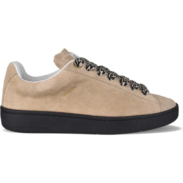 Lanvin Lite Curb sneakers van beige suède.Gouden logo in reliëf aan de zijkant.Logolabel op de tong.Tweekleurige vetersluiting met visgraatgeweven Curb-motief.Witte Moeder & Kinderlogo.Zwarte rubberen zool.Ronde neus.