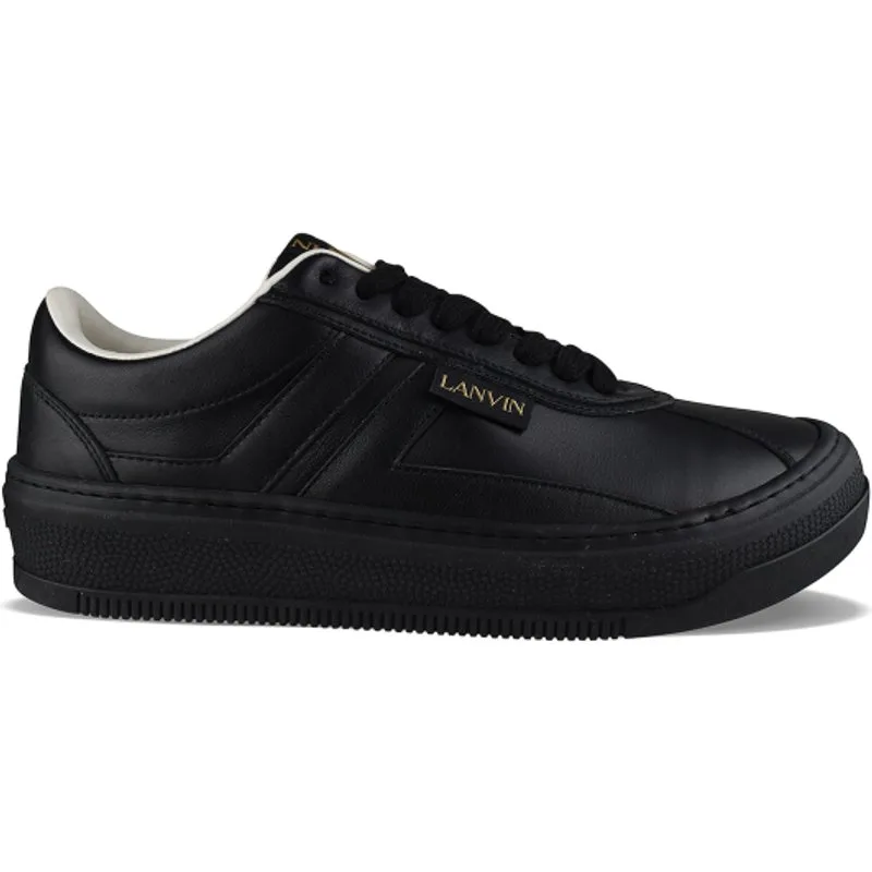 Cash sneakers van zwart leer Lanvin.Logo in goudopdruk op de zijkant.Tong met logopatch.Zwarte vetersluiting.Dikke zwarte rubberen zool.Made in Italy.
