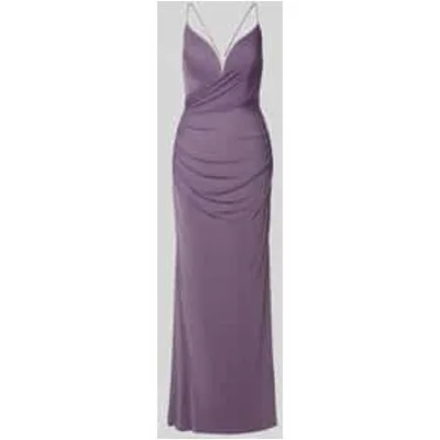 Dames avondjurk van Laona;Ondoorzichtige onderrok;getailleerde pasvorm;rugdecolleté;plooien;spaghettibandjes;vetersluiting;V-hals;naadritssluiting;ruglengte bij maat 36: 121 cm;borstwijdte bij maat 36: 20 cm