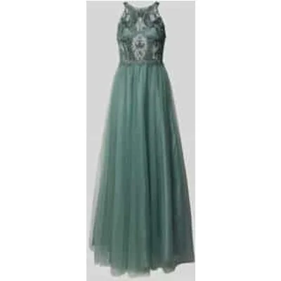 Dames avondjurk van Laona;Florale kantenafwerking;Regular Fit;Semitransparant ontwerp;Met siersteentjes;Halternek;Mesh;Ondoorzichtige onderrok;Rugdecolleté;Haakjes- en ritssluiting;Ruglengte bij maat 36: 145 cm;Borstwijdte bij maat 36: 34 cm