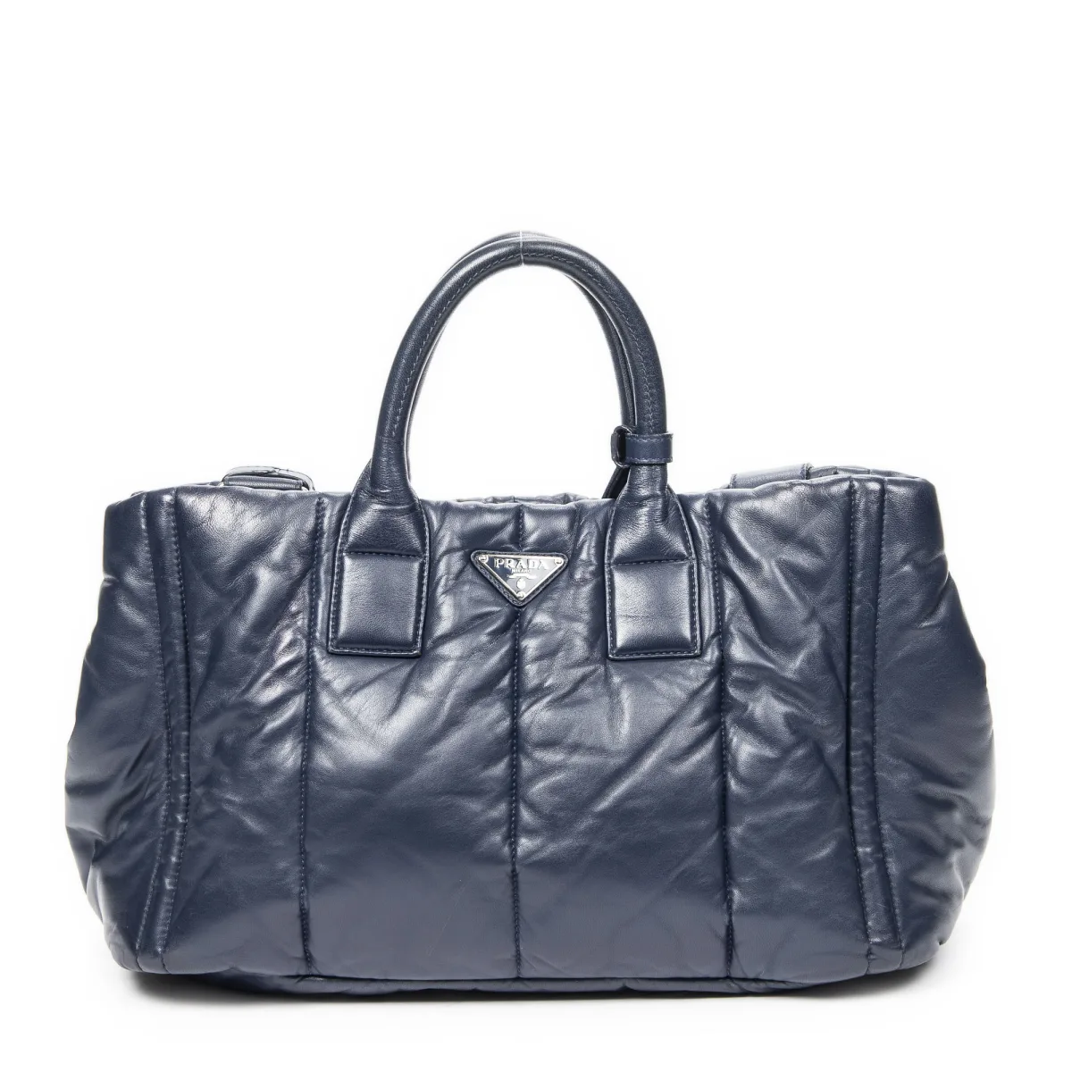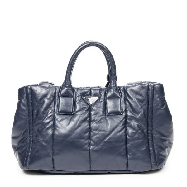 Prada Tassen Large Bomber Tote Handtas in de Marineblauw Kalfsleer in de Zilver hardware. Het product is in In Uitstekende Staat (A). Afmetingen: 40x24x20 cm Inclusief accessoires: Strap; Handle Strap BrandCo Paris vindt zeldzame artikelen in de beste staat voor ongelooflijke prijzen. Het is de moeite waard om geduldig te zijn! Koop met vertrouwen: alle artikelen van BrandCo Paris worden zorgvuldig geselecteerd en geverifieerd door ons team van experts. Alle artikelen worden geleverd met een certificaat van echtheid en verpakt door BrandCo Paris. Classificatietabel voor de conditie van het artikel: N (als nieuw) AA (perfecte staat) A (uitstekende staat) AB (zeer goede staat) B (goede/redelijke staat)