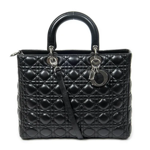 Dior Tassen Large Lady Dior Zip Schoudertas in de Black Kalfleer in de Silver hardware. Het product is in In Perfecte Staat (AA). Afmetingen: 32x25x11 cm Inclusief accessoires: Strap; Dustbag; Card; Charms Opmerkingen over de buitenkant: Opmerkingen: lichte krasjes op de handgrepen, de lederen rits en het leer onderaan Opmerkingen over de band/het handvat: Lichte schrammen op handgrepen BrandCo Paris vindt zeldzame artikelen in de beste staat voor ongelooflijke prijzen. Het is de moeite waard om geduldig te zijn! Koop met vertrouwen: alle artikelen van BrandCo Paris worden zorgvuldig geselecteerd en geverifieerd door ons team van experts. Alle artikelen worden geleverd met een certificaat van echtheid en verpakt door BrandCo Paris. Classificatietabel voor de conditie van het artikel: N (als nieuw) AA (perfecte staat) A (uitstekende staat) AB (zeer goede staat) B (goede/redelijke staat)