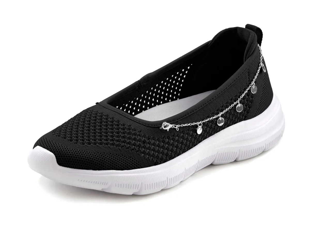 Design: Profielzolen, Versterkte hak; Type sluiting: Slip; Motief: Effen; Materiaal: Mesh; Schoenneus: Ronde neus; Extra's: Applicaties, Flexibele zool; Hakhoogte: Platte hak (0-3 cm)