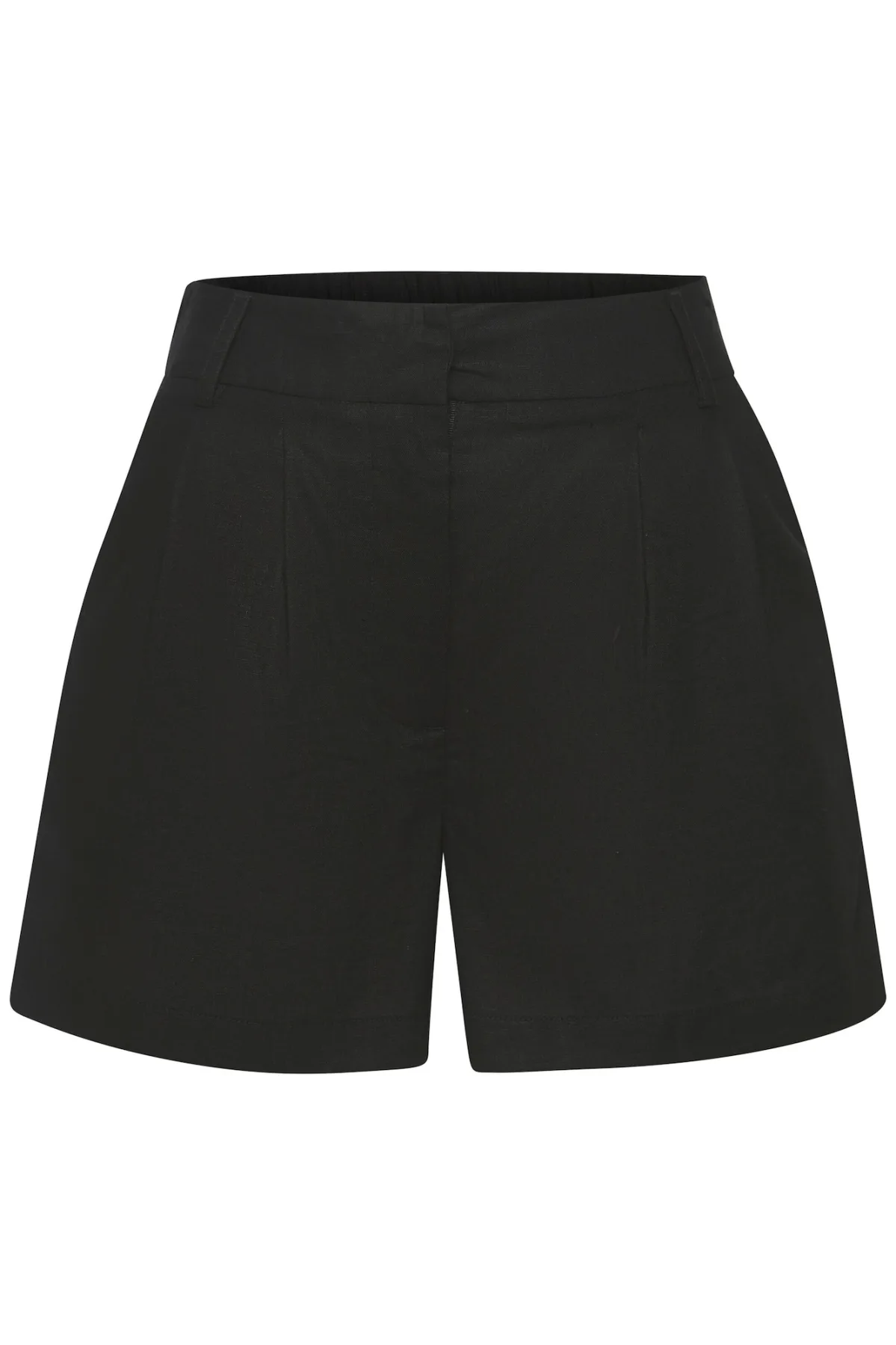 Design: Paspelzak, Zakken aan de zijkant; Type sluiting: Ritssluiting; Materiaal: Linnen; Motief: Effen; Details: Plooien; Extra's: Op staal naden; Lengte: Kort/mini; Pasvorm: Wide leg; Taillehoogte: Mid waist