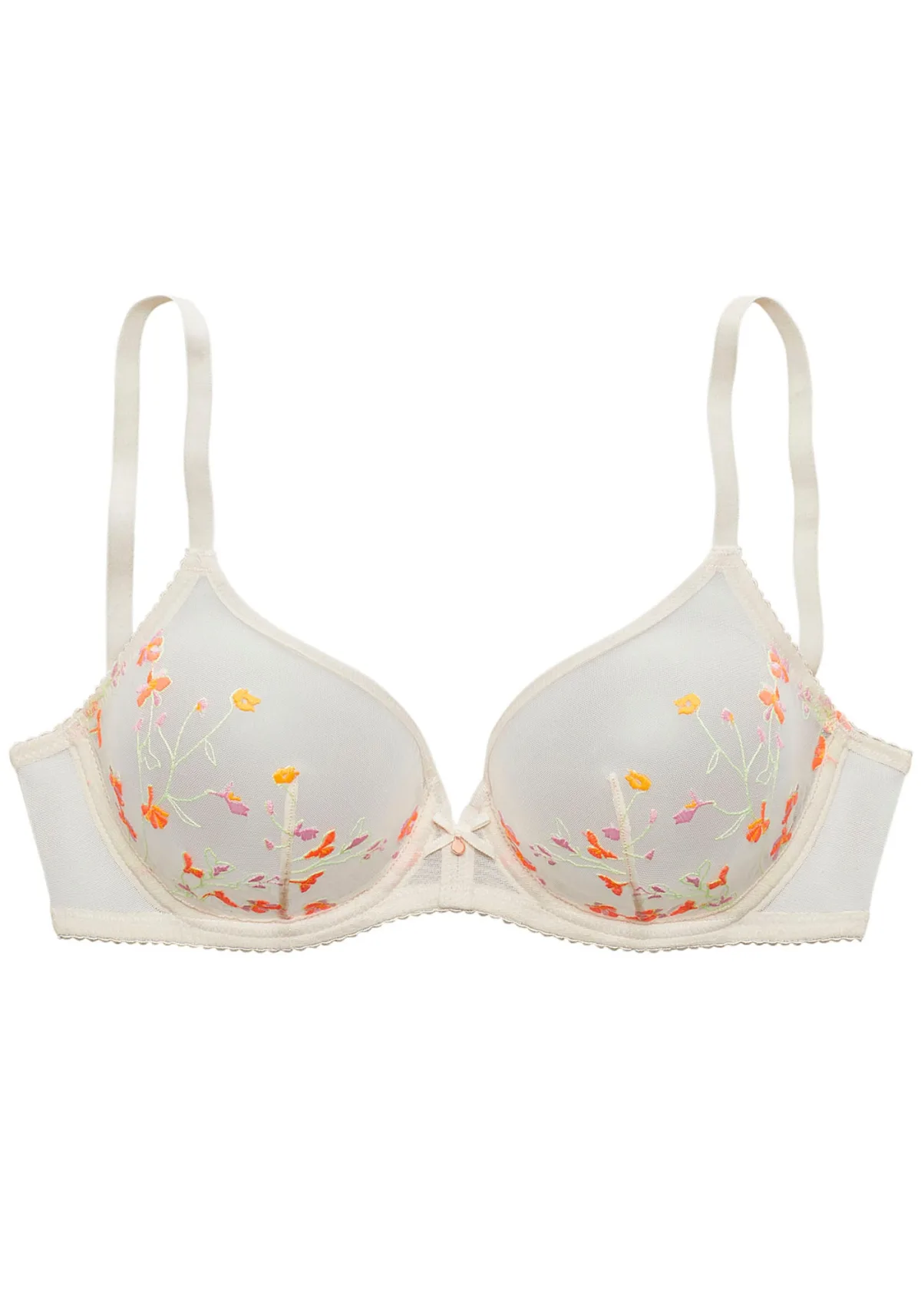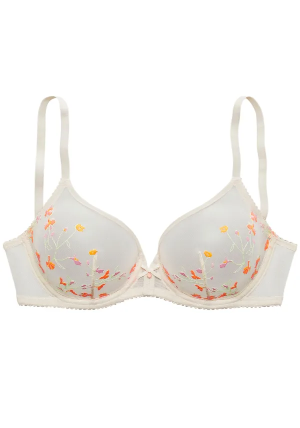 Cup soorten: Soft cup bh; Soort bandjes: Normale bandjes; Bh/bikini type: T-shirt; Beugel: Met beugel; Type sluiting: Haakjes; Motief: Bloemenprint; Details: Borduursels