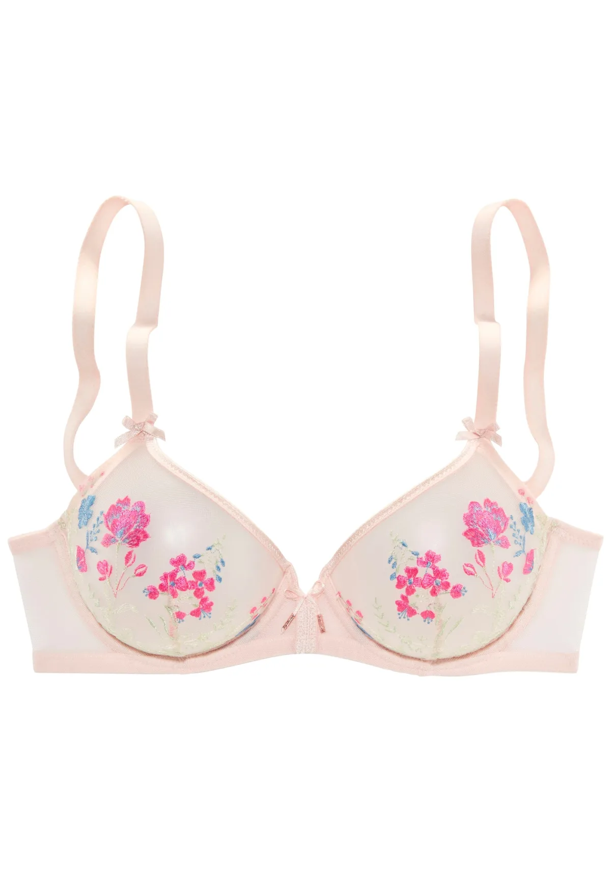 Cup soorten: Full cup bh; Soort bandjes: Normale bandjes; Bh/bikini type: T-shirt; Beugel: Met beugel; Design: Haaksluiting; Type sluiting: Haakjes; Motief: Bloemenprint; Details: Kant, Borduursels; Extra's: Verstelbare bandjes