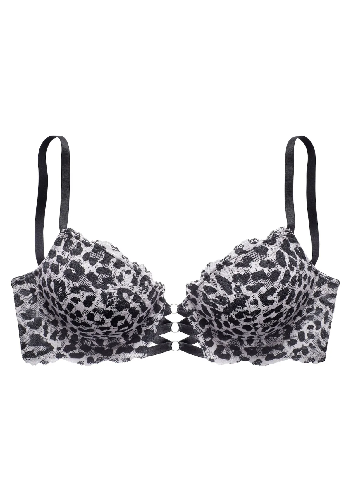 Cup soorten: Full cup bh; Soort bandjes: Normale bandjes; Bh/bikini type: Push-up; Beugel: Met beugel; Design: Verstelbare riemen; Motief: Dierenprint; Details: Cut-outs, Kant; Extra's: All-over patroon