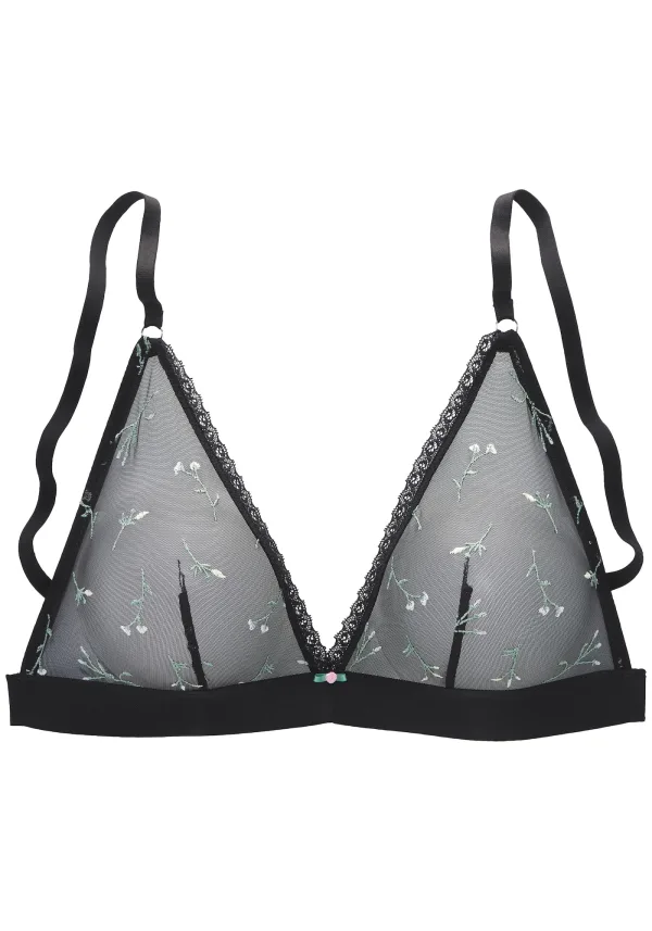 Cup soorten: Soft cup bh; Soort bandjes: Normale bandjes; Bh/bikini type: Triangel; Beugel: Zonder beugel; Type sluiting: Haakjes; Materiaal: Tule; Motief: Bloemenprint; Details: Kant, Borduursels; Extra's: All-over patroon