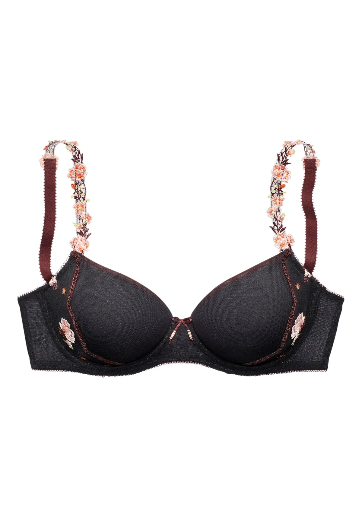 Cup soorten: Demi cup bh; Bh/bikini type: T-shirt; Beugel: Met beugel; Design: Rechte zoom; Type sluiting: Haakjes; Motief: Bloemenprint; Details: Kant, Borduursels; Extra's: Verstelbare bandjes