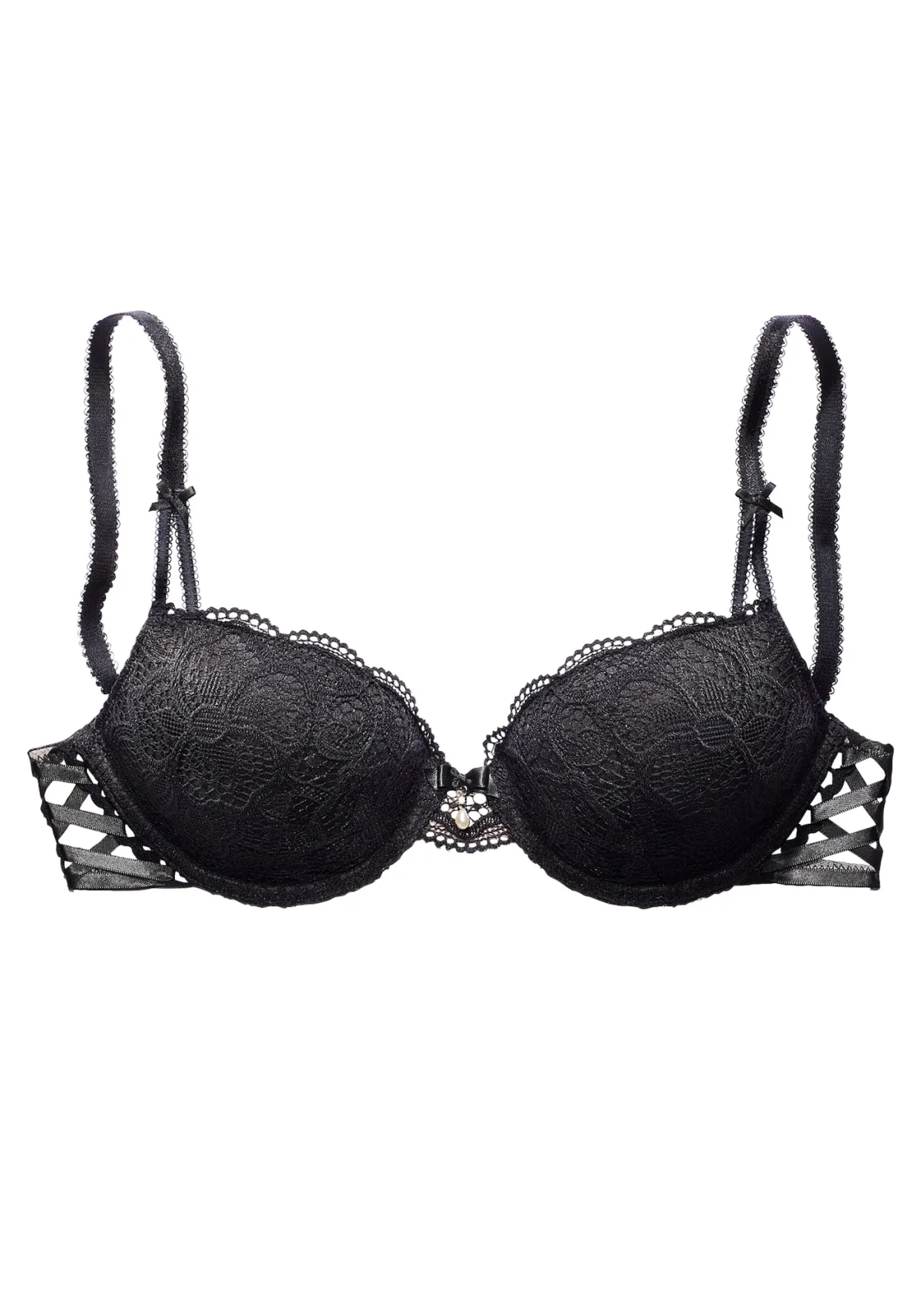 Cup soorten: Full cup bh; Soort bandjes: Normale bandjes; Bh/bikini type: Push-up; Beugel: Met beugel; Type sluiting: Haakjes; Motief: Effen; Details: Kant, Sierstenen