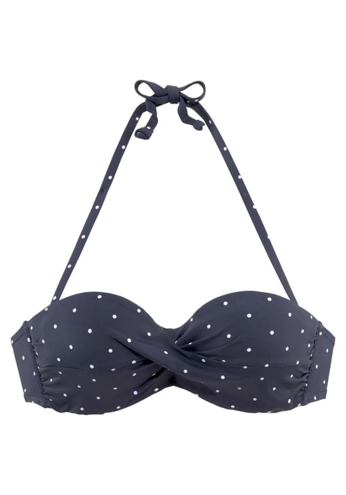 Cup soorten: Demi cup bh, Uitneembare cups; Soort bandjes: Halterbandjes; Bh/bikini type: Bandeau; Beugel: Zonder beugel; Design: Gevoerde zoom/rand, Met band/snoer; Motief: Gestippeld; Details: Gedrapeerd; Extra's: All-over patroon, Op staal naden, Voelt zacht aan