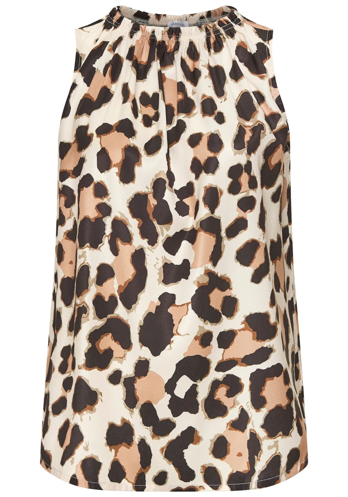 Blouse type: Blouseshirt; Design: Gevoerde zoom/rand, Recht model; Materiaal: Satijn; Motief: Dierenprint; Kraag: Zonder kraag; Details: Gedrapeerd; Extra's: All-over patroon; Pasvorm: Normale pasvorm; Armlengte: Mouwloos; Lengte: Normale lengte