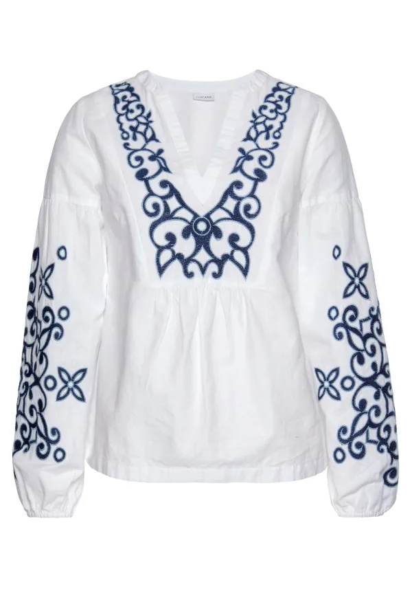 LASCANA Blouse blauw / wit Prijzen