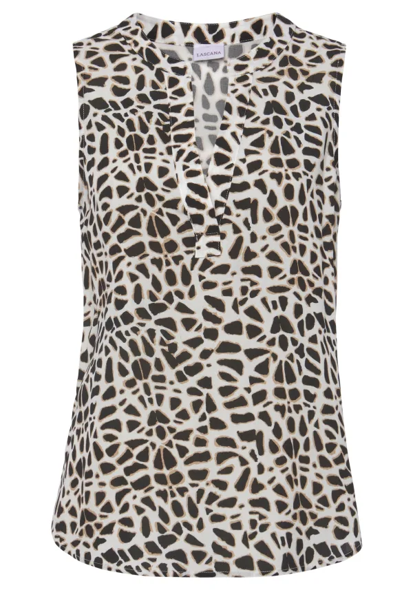 Blouse type: Blouseshirt; Materiaal: Viscose; Motief: Dierenprint; Kraag: Zonder kraag; Details: Plooien; Pasvorm: Normale pasvorm; Armlengte: Mouwloos; Lengte: Normale lengte