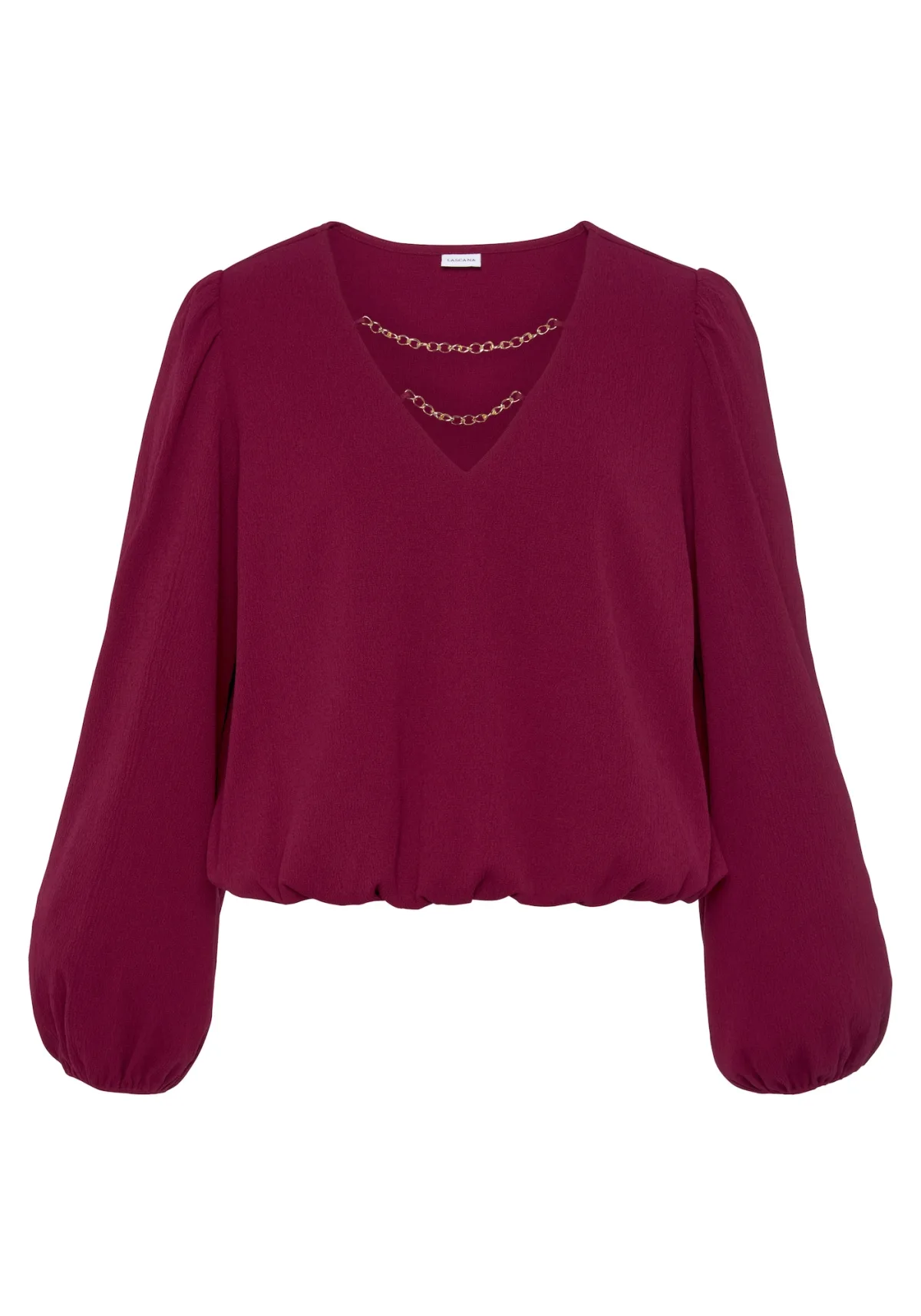 Blouse type: Blouseshirt; Design: Pofmouwen; Motief: Effen; Kraag: Zonder kraag; Extra's: Op staal naden; Pasvorm: Normale pasvorm; Armlengte: Lange mouw; Lengte: Normale lengte