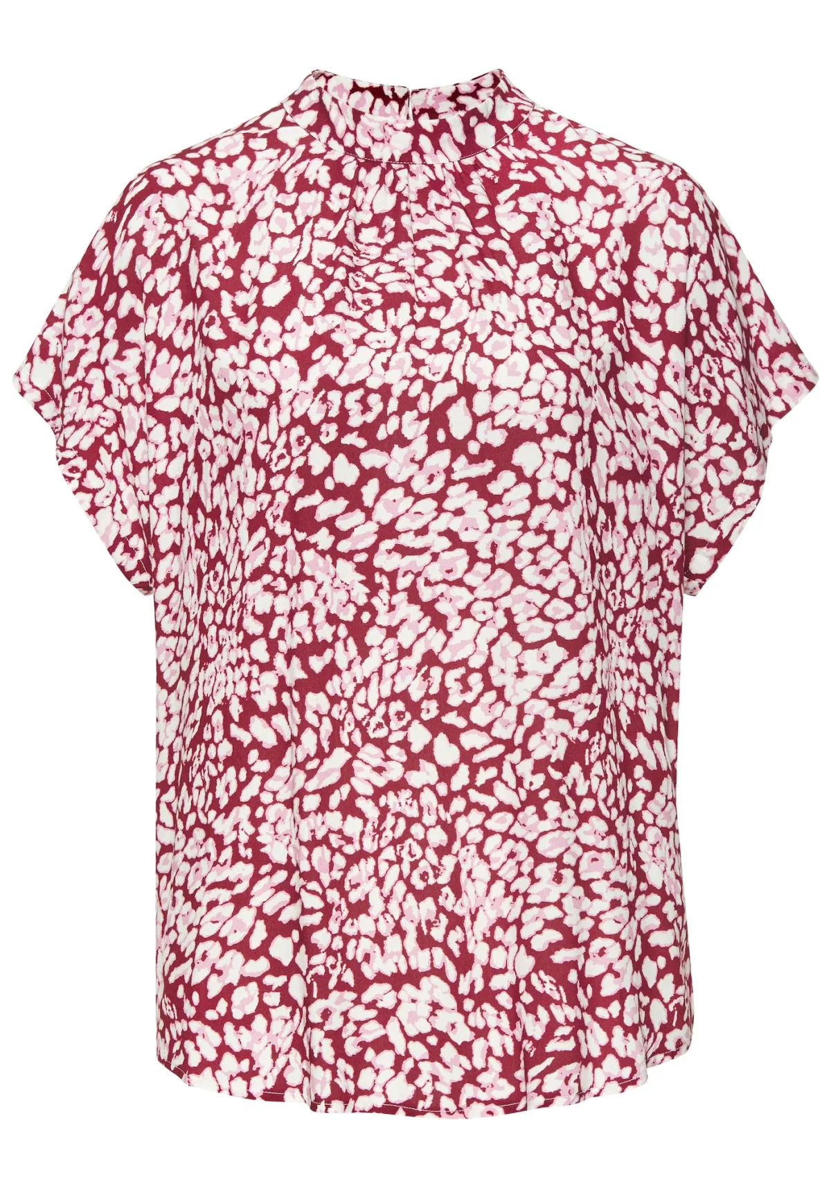Blouse type: Wijde blouse; Design: Rechte zoom, Getailleerd model, Overcut schouder; Materiaal: Viscose; Kraag: Opstaande kraag; Details: Cut-outs, Gedrapeerd; Extra's: All-over patroon; Pasvorm: Normale pasvorm; Armlengte: Kwartmouw; Lengte: Normale lengte