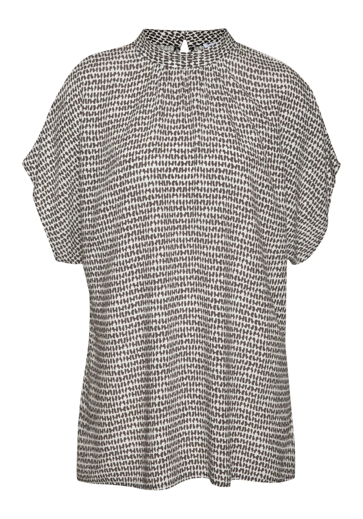 Blouse type: Blouseshirt; Type sluiting: Knoopsluiting; Materiaal: Viscose; Kraag: Opstaande kraag; Details: Cut-outs; Pasvorm: Losse pasvorm; Armlengte: Kwartmouw; Lengte: Normale lengte
