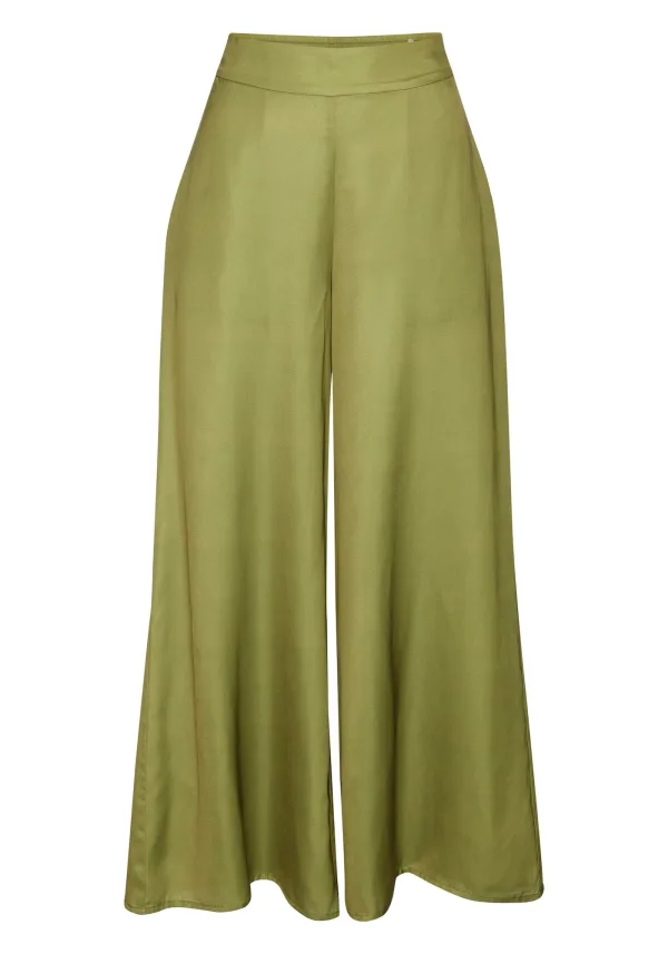 Design: Elastische taille/zoom, Zakken aan de zijkant; Materiaal: Satijn; Motief: Effen; Details: Gedrapeerd; Extra's: Gladde stof; Lengte: Lang/maxi; Pasvorm: Wide leg; Taillehoogte: High waist