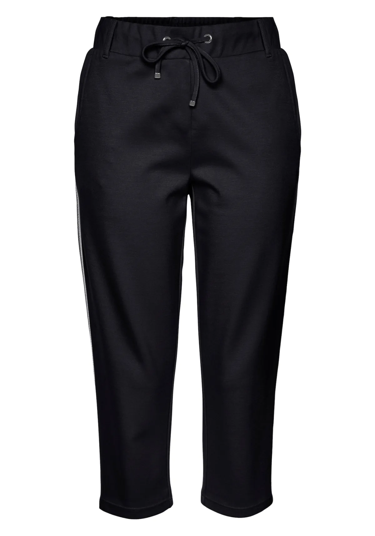 Design: Taille met trekkoord, Elastische taille/zoom, Zakken aan de zijkant, Contrasterende inserts; Materiaal: Viscose; Motief: Effen; Details: Zijstrepen; Extra's: Op staal naden, Voelt zacht aan, Riemlussen; Lengte: 3/4 lengte; Pasvorm: Regular; Taillehoogte: Mid waist