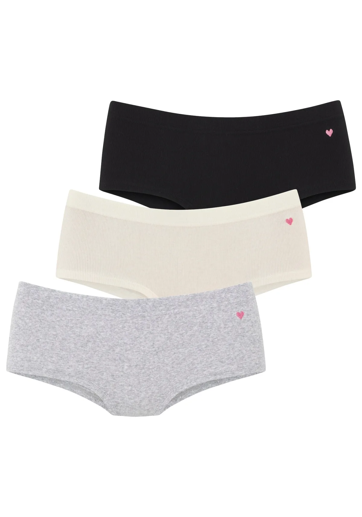 Materiaal: Katoen; Motief: Mélange; Details: Borduursels; Extra's: Op staal naden, Voelt zacht aan; Aantal: 3 Pack; Taillehoogte: Mid waist