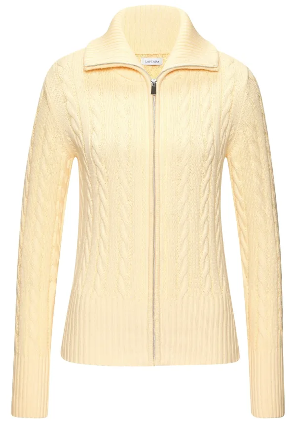Design: Vlecht brei; Type sluiting: Ritssluiting; Materiaal: Knitwear; Halstype: Opstaande kraag; Motief: Effen; Extra's: Fully fashioned; Pasvorm: Losse pasvorm; Armlengte: Lange mouw; Lengte: Normale lengte