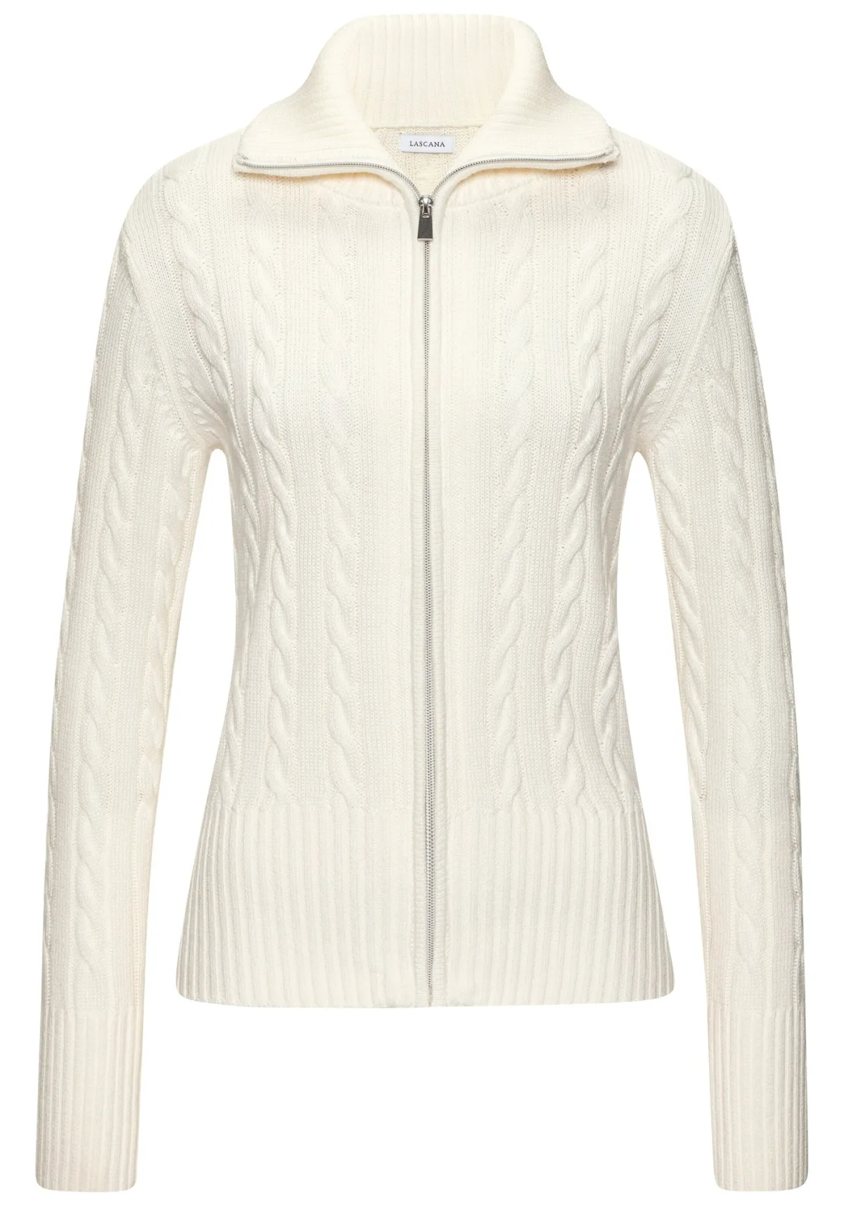 Design: Vlecht brei; Type sluiting: Ritssluiting; Materiaal: Knitwear; Halstype: Opstaande kraag; Motief: Effen; Extra's: Voelt zacht aan; Pasvorm: Normale pasvorm; Armlengte: Lange mouw; Lengte: Normale lengte