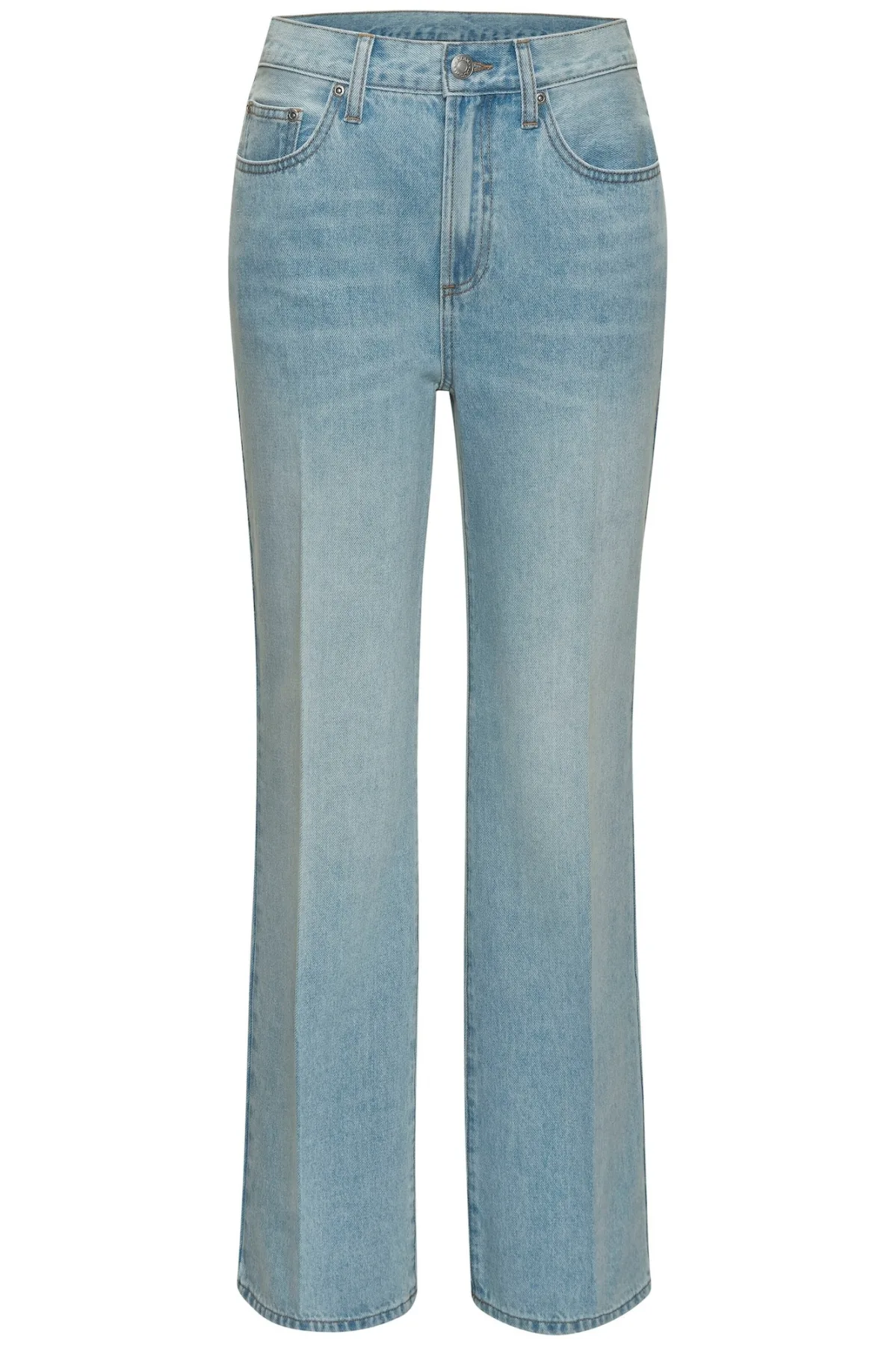 Design: 5-pocket-style; Type sluiting: Knoopsluiting; Materiaal: Denim; Motief: Effen; Extra's: Riemlussen; Wassing: Light washed; Lengte: Lang/maxi; Pasvorm: Wide leg; Taillehoogte: High waist
